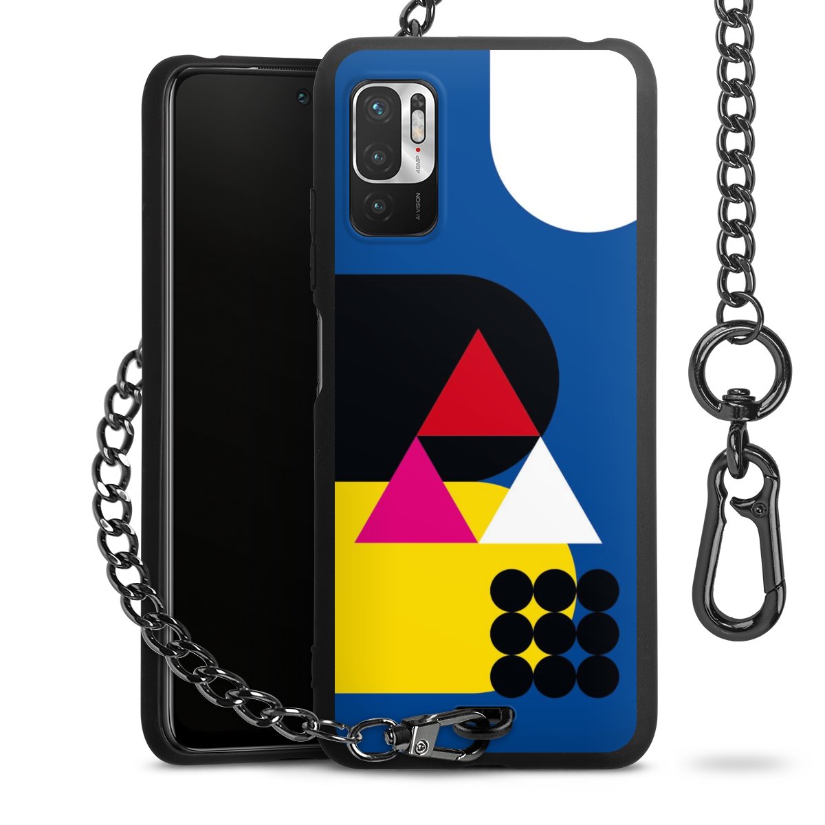 - Mattschwarze Handyhülle mit Metallkette