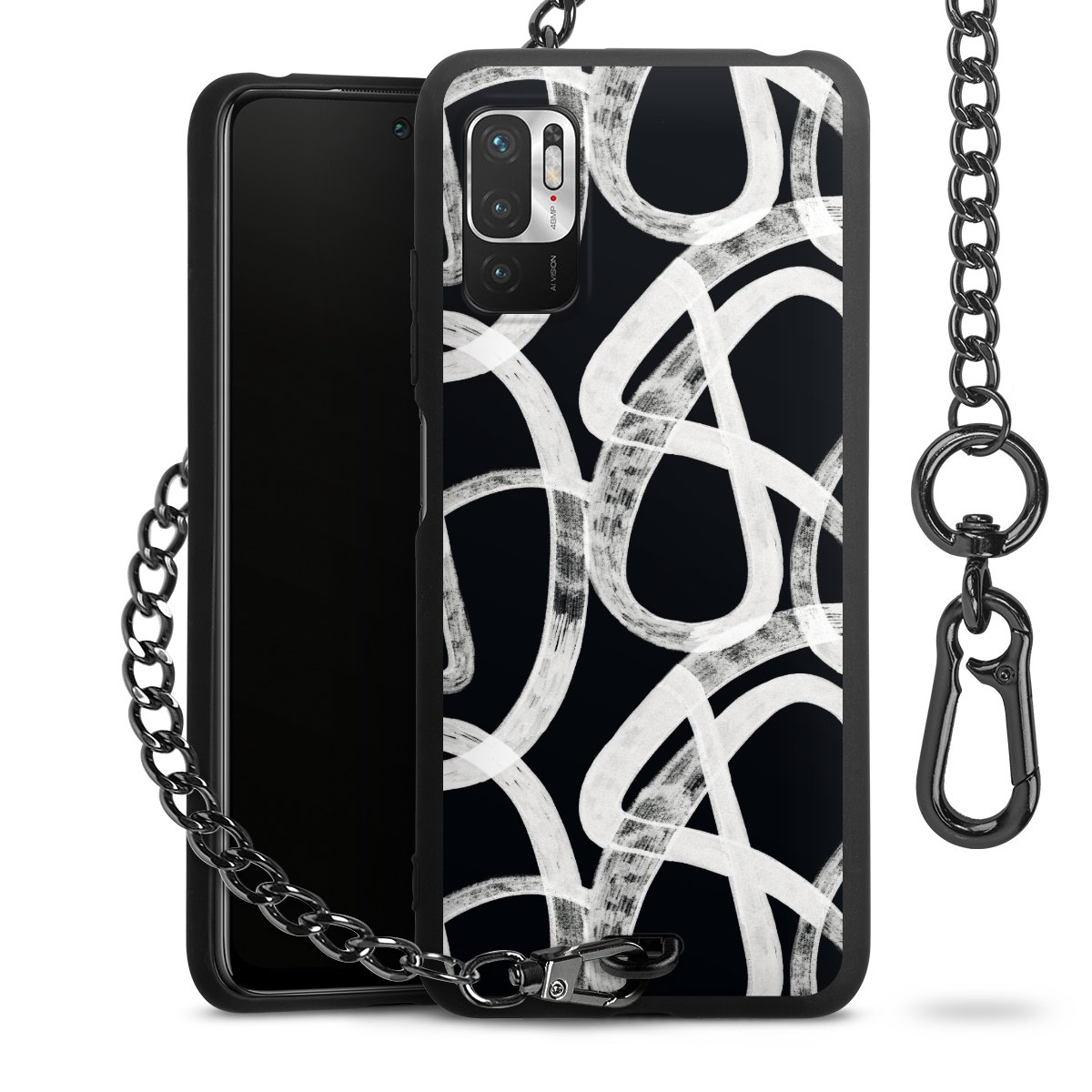 • Mattschwarze Handyhülle mit Metallkette