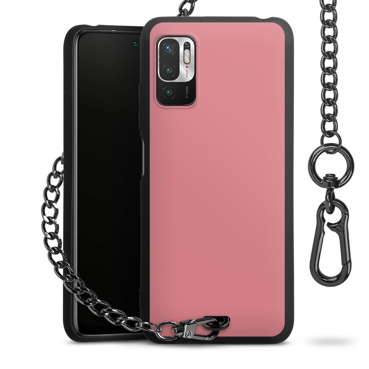 - Mattschwarze Handyhülle mit Metallkette
