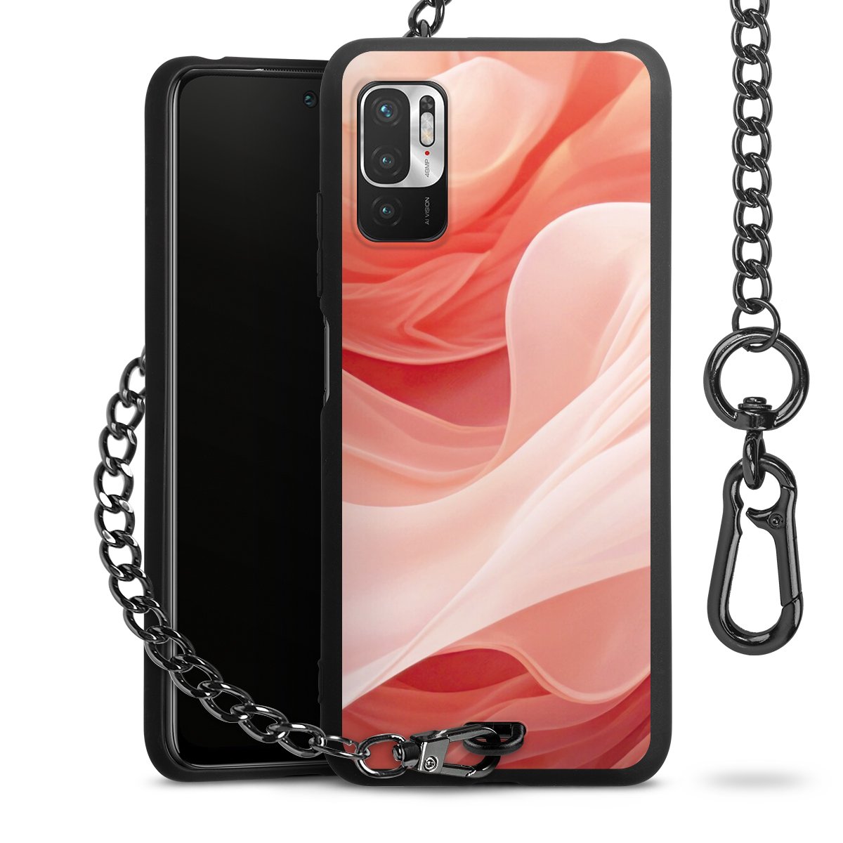 Die mattschwarze Silikon-Handyhülle besteht aus robustem TPU (thermoplastisches Polyurethan). Sie ist flexibel und schützt Dein Smartphone vor Stößen und Kratzern. Die Kette sowie der Karabinerhaken sind aus Metall in Gunmetal-Optik gefertigt. Für dieses Produkt kommen ausschließlich TÜV-geprüfte Materialien zum Einsatz.