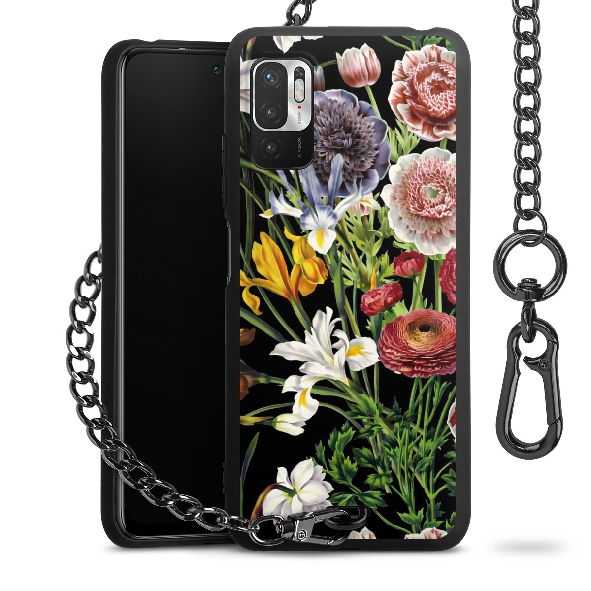 • Mattschwarze Handyhülle mit Metallkette