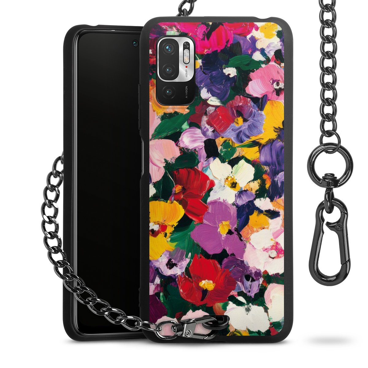 • Mattschwarze Handyhülle mit Metallkette