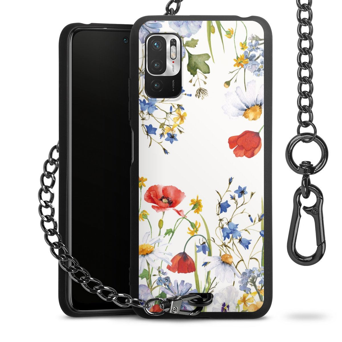 • Mattschwarze Handyhülle mit Metallkette