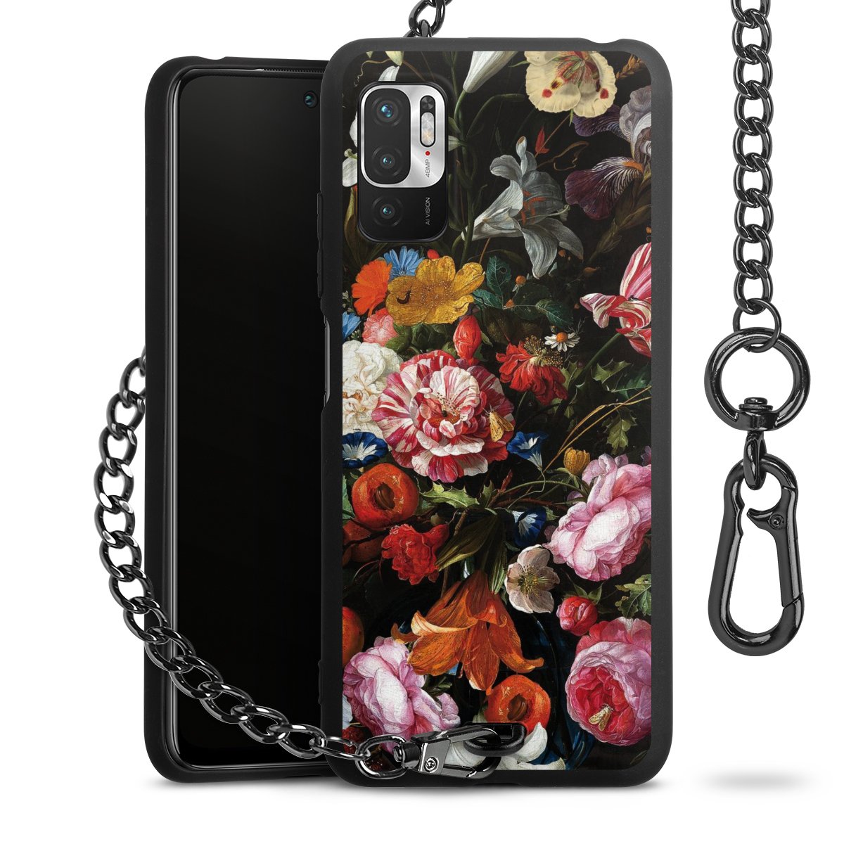 • Mattschwarze Handyhülle mit Metallkette