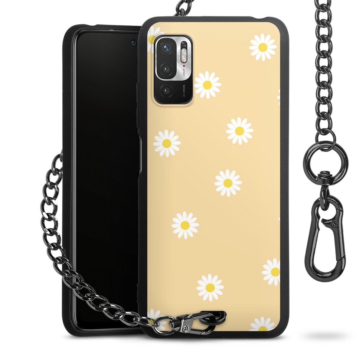 - Mattschwarze Handyhülle mit Metallkette