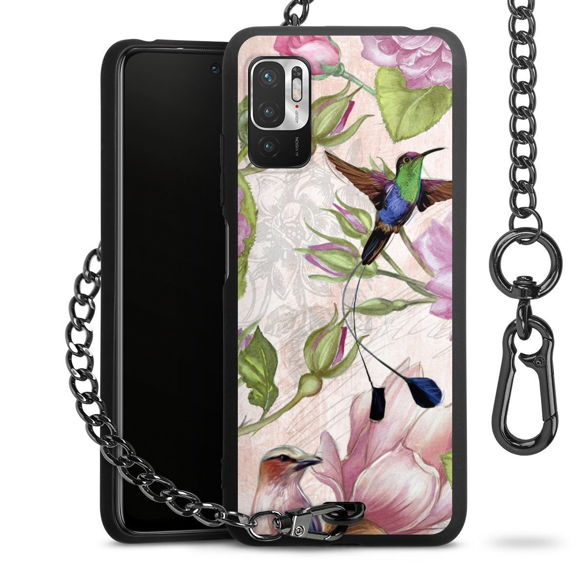 • Mattschwarze Handyhülle mit Metallkette
