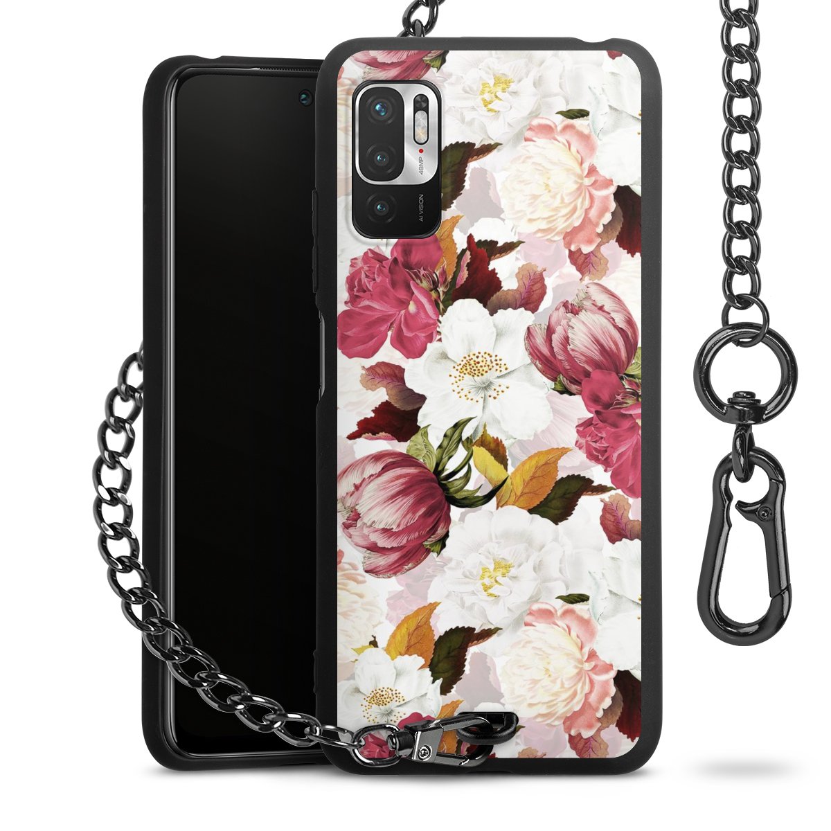 • Mattschwarze Handyhülle mit Metallkette
