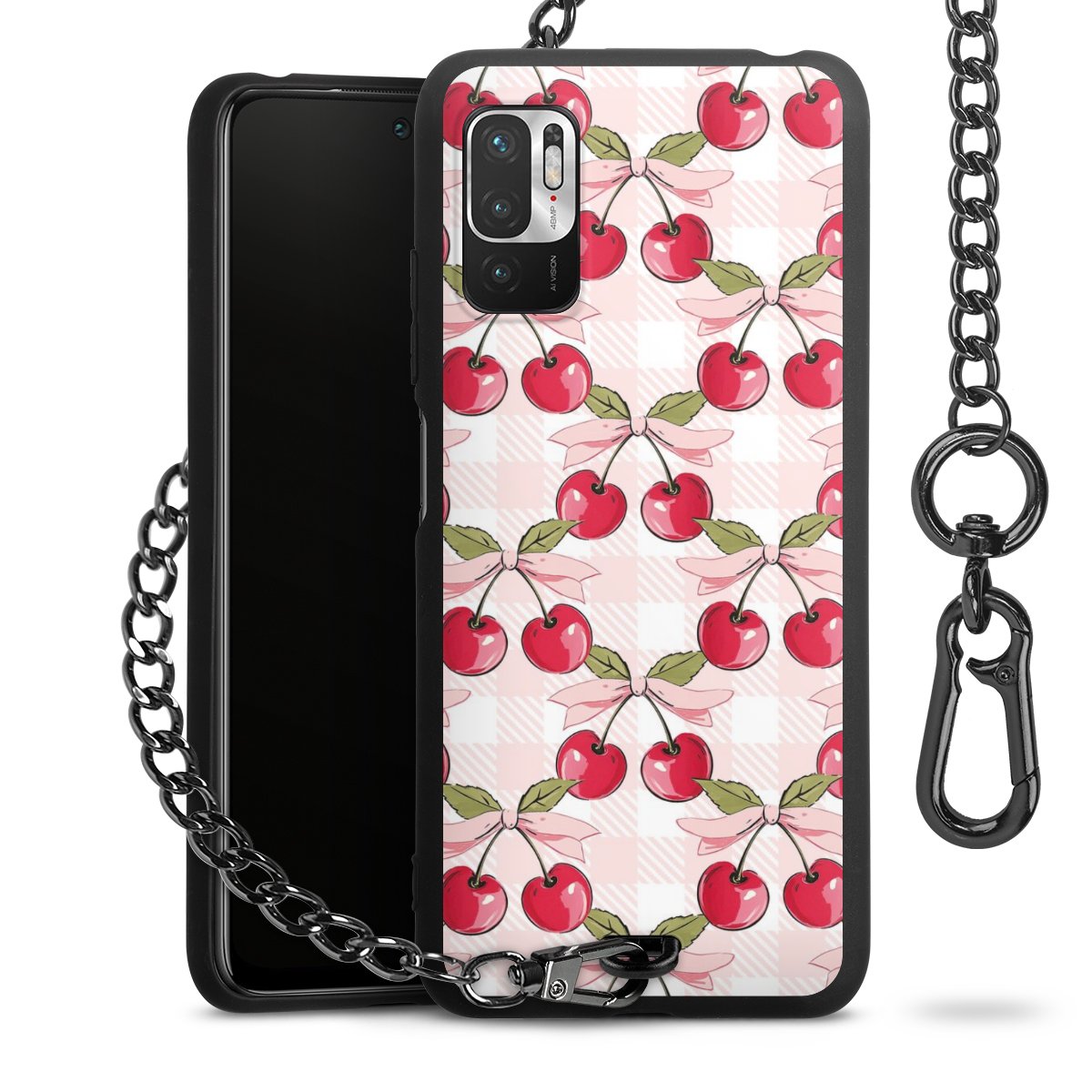 • Mattschwarze Handyhülle mit Metallkette