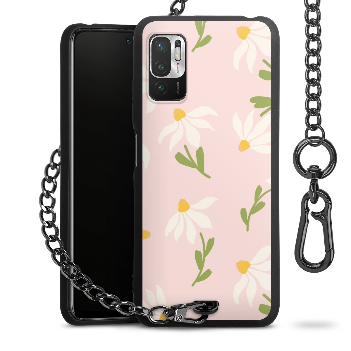 • Mattschwarze Handyhülle mit Metallkette