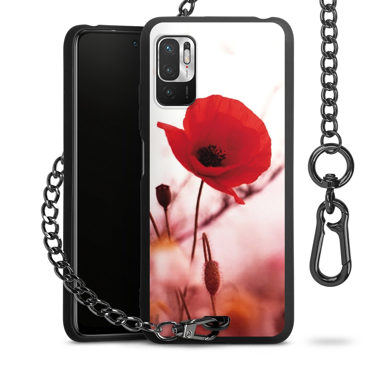 - Mattschwarze Handyhülle mit Metallkette
