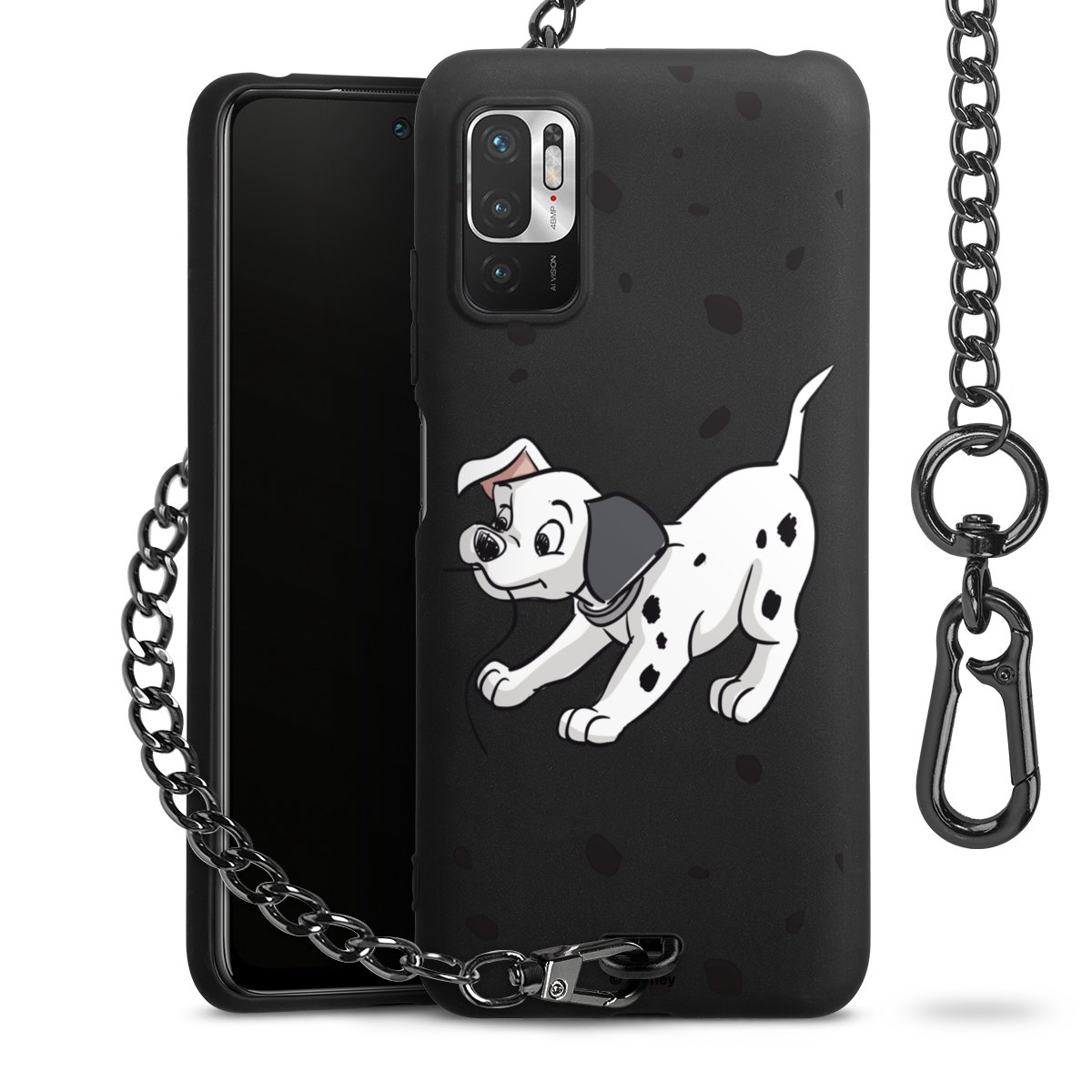 Die mattschwarze Silikon-Handyhülle besteht aus robustem TPU (thermoplastisches Polyurethan). Sie ist flexibel und schützt Dein Smartphone vor Stößen und Kratzern. Die Kette sowie der Karabinerhaken sind aus Metall in Gunmetal-Optik gefertigt. Für dieses Produkt kommen ausschließlich TÜV-geprüfte Materialien zum Einsatz.