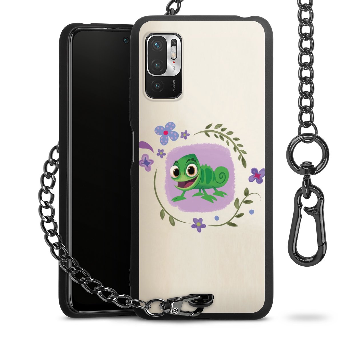 Die mattschwarze Silikon-Handyhülle besteht aus robustem TPU (thermoplastisches Polyurethan). Sie ist flexibel und schützt Dein Smartphone vor Stößen und Kratzern. Die Kette sowie der Karabinerhaken sind aus Metall in Gunmetal-Optik gefertigt. Für dieses Produkt kommen ausschließlich TÜV-geprüfte Materialien zum Einsatz.
