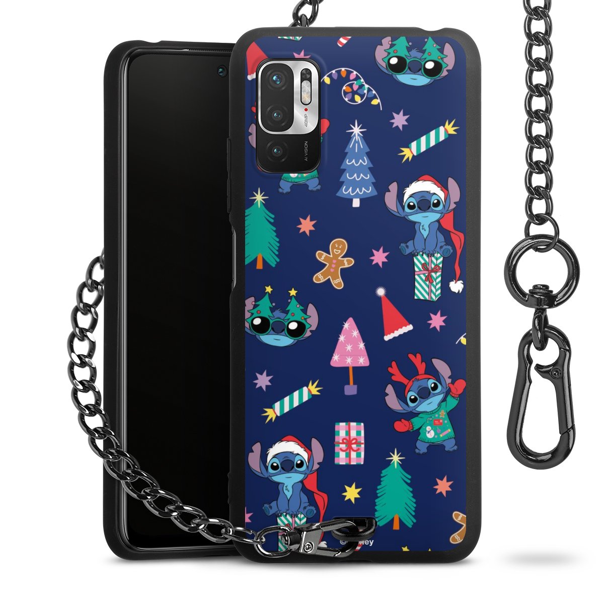 • Mattschwarze Handyhülle mit Metallkette