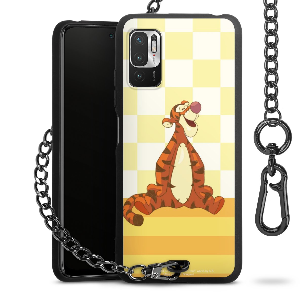 Die mattschwarze Silikon-Handyhülle besteht aus robustem TPU (thermoplastisches Polyurethan). Sie ist flexibel und schützt Dein Smartphone vor Stößen und Kratzern. Die Kette sowie der Karabinerhaken sind aus Metall in Gunmetal-Optik gefertigt. Für dieses Produkt kommen ausschließlich TÜV-geprüfte Materialien zum Einsatz.