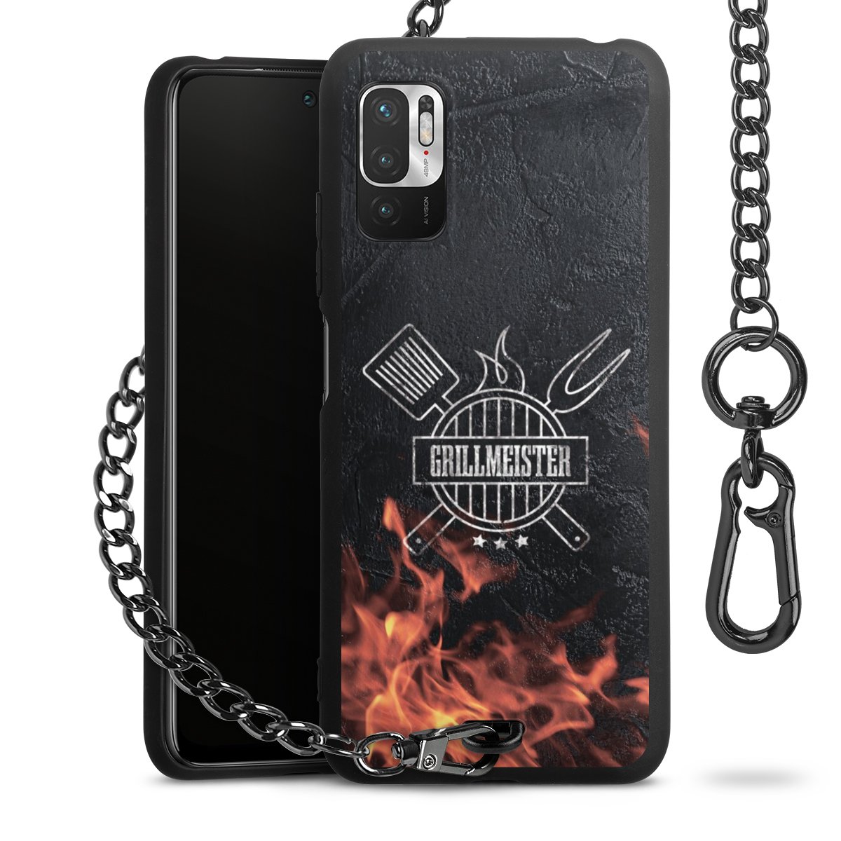 • Mattschwarze Handyhülle mit Metallkette