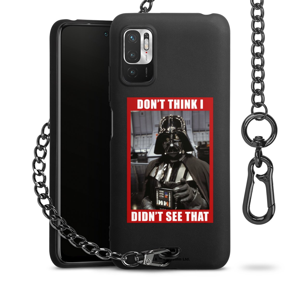 Die mattschwarze Silikon-Handyhülle besteht aus robustem TPU (thermoplastisches Polyurethan). Sie ist flexibel und schützt Dein Smartphone vor Stößen und Kratzern. Die Kette sowie der Karabinerhaken sind aus Metall in Gunmetal-Optik gefertigt. Für dieses Produkt kommen ausschließlich TÜV-geprüfte Materialien zum Einsatz.