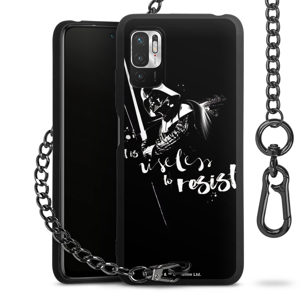 Die mattschwarze Silikon-Handyhülle besteht aus robustem TPU (thermoplastisches Polyurethan). Sie ist flexibel und schützt Dein Smartphone vor Stößen und Kratzern. Die Kette sowie der Karabinerhaken sind aus Metall in Gunmetal-Optik gefertigt. Für dieses Produkt kommen ausschließlich TÜV-geprüfte Materialien zum Einsatz.