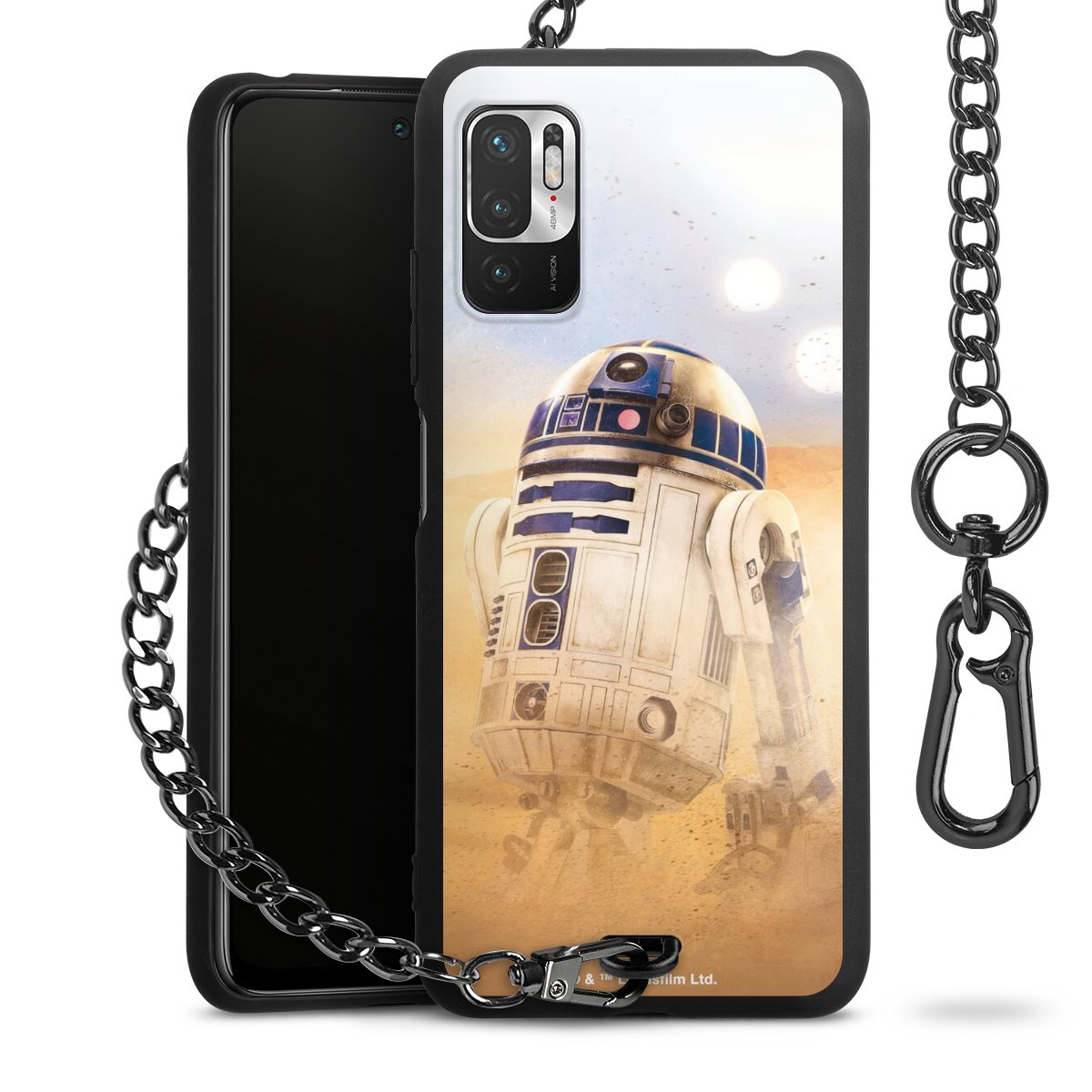 Die mattschwarze Silikon-Handyhülle besteht aus robustem TPU (thermoplastisches Polyurethan). Sie ist flexibel und schützt Dein Smartphone vor Stößen und Kratzern. Die Kette sowie der Karabinerhaken sind aus Metall in Gunmetal-Optik gefertigt. Für dieses Produkt kommen ausschließlich TÜV-geprüfte Materialien zum Einsatz.