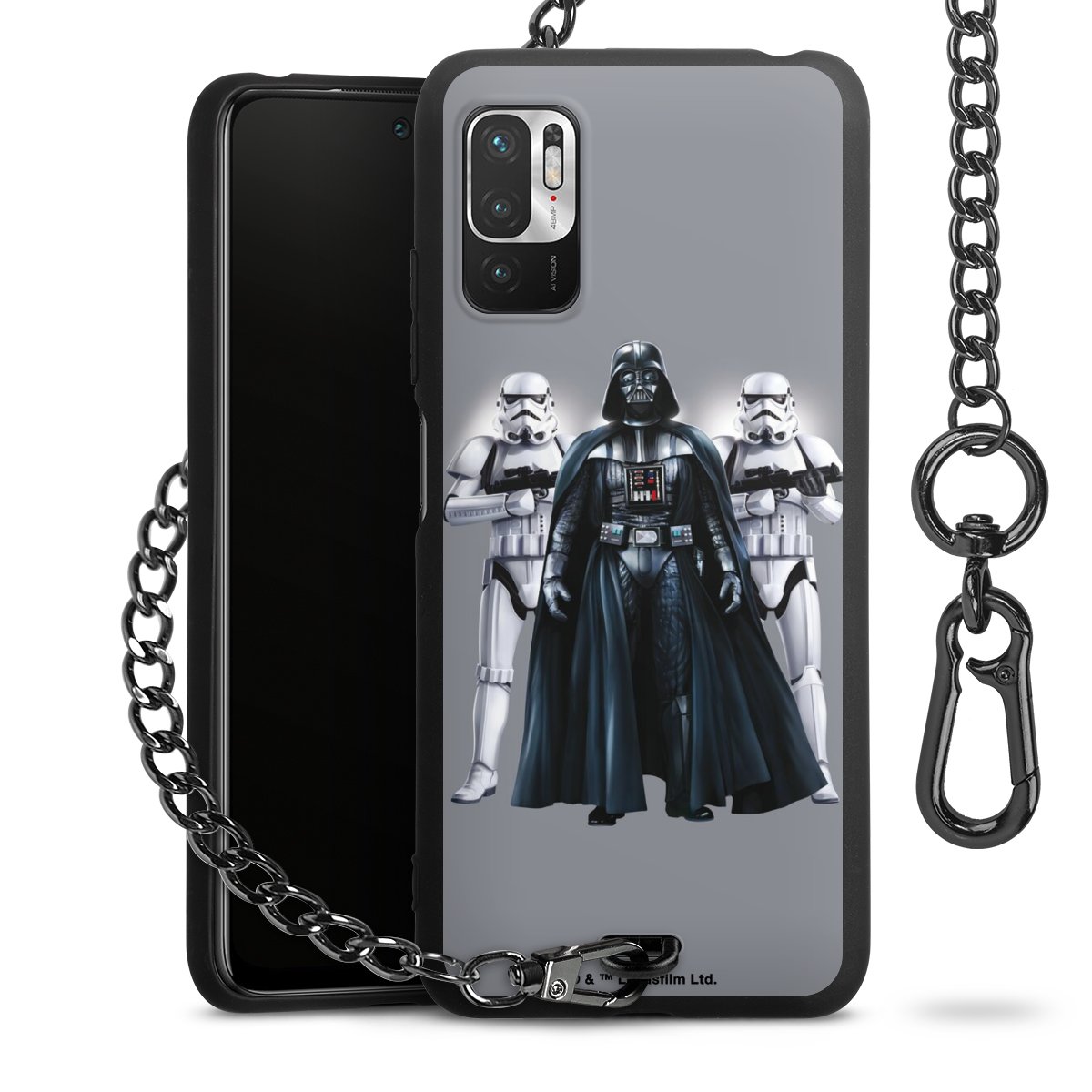 Die mattschwarze Silikon-Handyhülle besteht aus robustem TPU (thermoplastisches Polyurethan). Sie ist flexibel und schützt Dein Smartphone vor Stößen und Kratzern. Die Kette sowie der Karabinerhaken sind aus Metall in Gunmetal-Optik gefertigt. Für dieses Produkt kommen ausschließlich TÜV-geprüfte Materialien zum Einsatz.