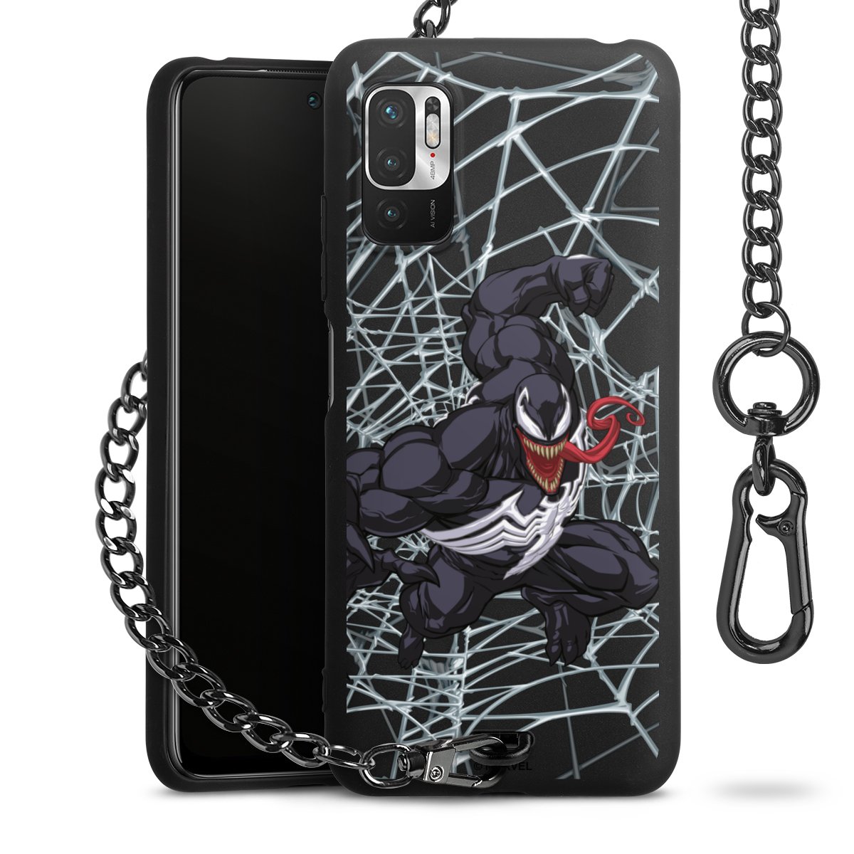 Die mattschwarze Silikon-Handyhülle besteht aus robustem TPU (thermoplastisches Polyurethan). Sie ist flexibel und schützt Dein Smartphone vor Stößen und Kratzern. Die Kette sowie der Karabinerhaken sind aus Metall in Gunmetal-Optik gefertigt. Für dieses Produkt kommen ausschließlich TÜV-geprüfte Materialien zum Einsatz.