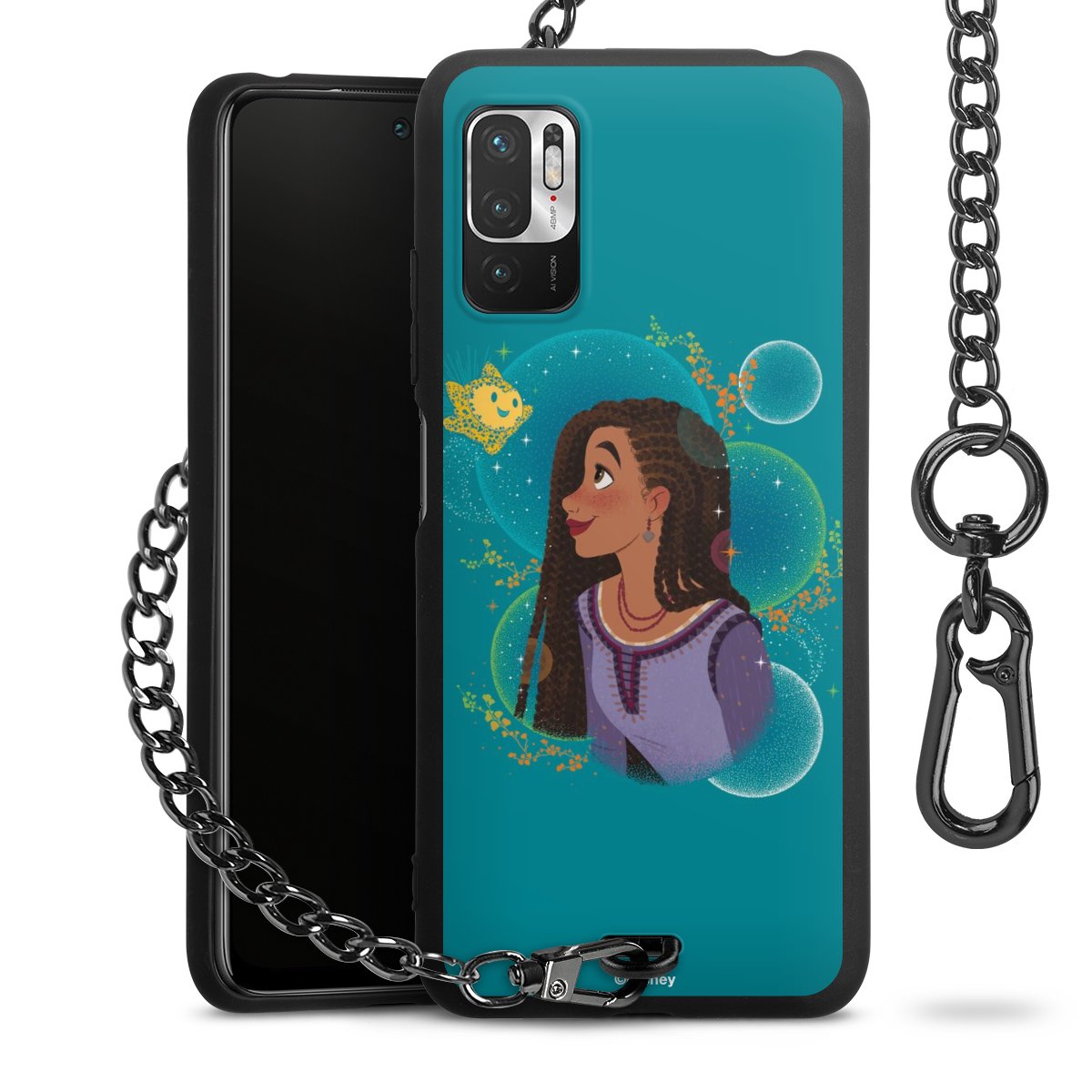 • Mattschwarze Handyhülle mit Metallkette