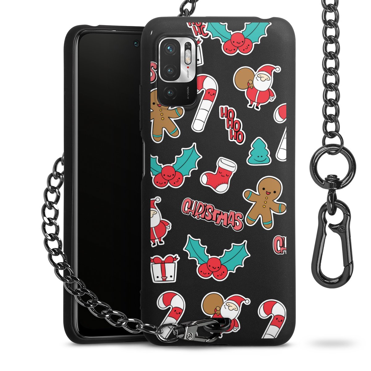 - Mattschwarze Handyhülle mit Metallkette