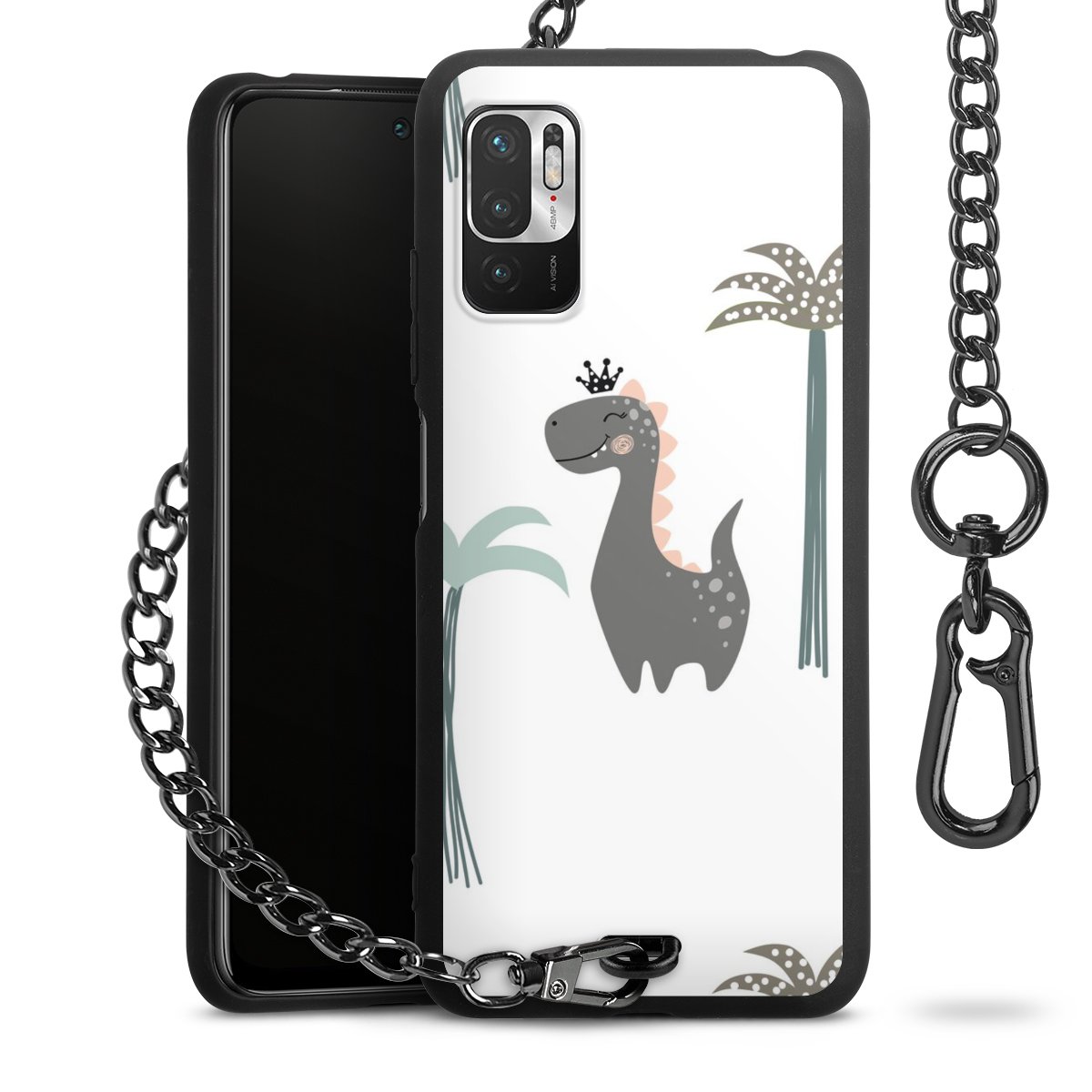 Die mattschwarze Silikon-Handyhülle besteht aus robustem TPU (thermoplastisches Polyurethan). Sie ist flexibel und schützt Dein Smartphone vor Stößen und Kratzern. Die Kette sowie der Karabinerhaken sind aus Metall in Gunmetal-Optik gefertigt. Für dieses Produkt kommen ausschließlich TÜV-geprüfte Materialien zum Einsatz.