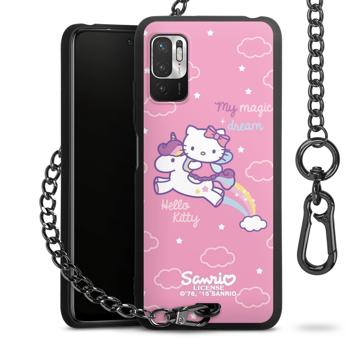 Die mattschwarze Silikon-Handyhülle besteht aus robustem TPU (thermoplastisches Polyurethan). Sie ist flexibel und schützt Dein Smartphone vor Stößen und Kratzern. Die Kette sowie der Karabinerhaken sind aus Metall in Gunmetal-Optik gefertigt. Für dieses Produkt kommen ausschließlich TÜV-geprüfte Materialien zum Einsatz.