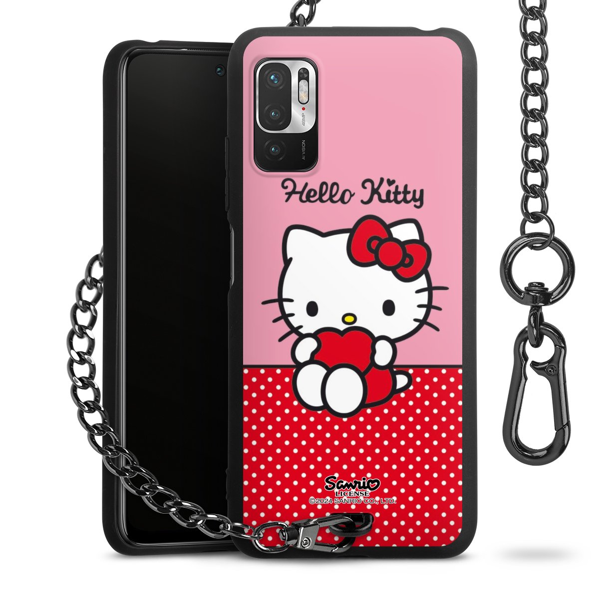 Die mattschwarze Silikon-Handyhülle besteht aus robustem TPU (thermoplastisches Polyurethan). Sie ist flexibel und schützt Dein Smartphone vor Stößen und Kratzern. Die Kette sowie der Karabinerhaken sind aus Metall in Gunmetal-Optik gefertigt. Für dieses Produkt kommen ausschließlich TÜV-geprüfte Materialien zum Einsatz.