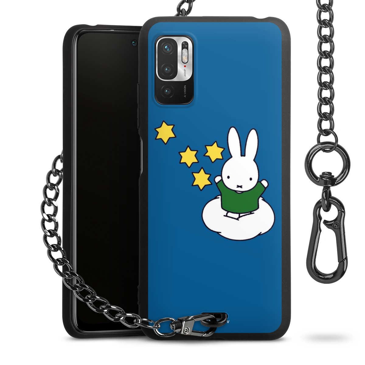 Die Handyhülle verfügt über eine mittig am unteren Rand platzierte Öse, an der die Metallkette stabil befestigt ist. Bestelle die Hülle einfach für Dein Smartphone-Modell, dann passt sie wie angegossen und Du brauchst sie bloß einmal anzudrücken. Handy in die Tasche, Karabiner an den Hosenbund – schon kann die Party starten.