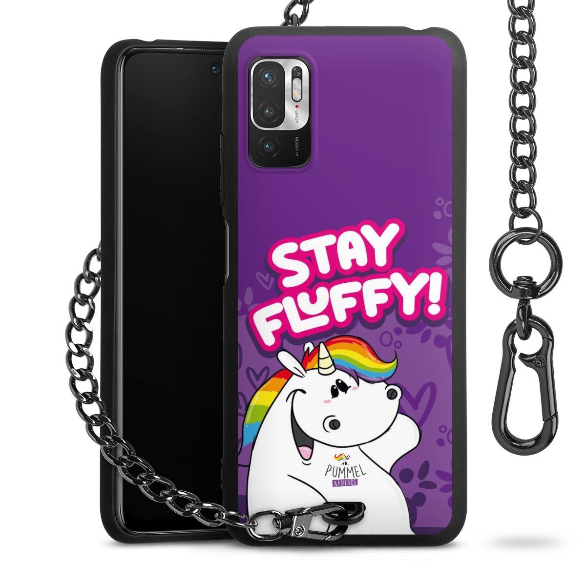 Die mattschwarze Silikon-Handyhülle besteht aus robustem TPU (thermoplastisches Polyurethan). Sie ist flexibel und schützt Dein Smartphone vor Stößen und Kratzern. Die Kette sowie der Karabinerhaken sind aus Metall in Gunmetal-Optik gefertigt. Für dieses Produkt kommen ausschließlich TÜV-geprüfte Materialien zum Einsatz.
