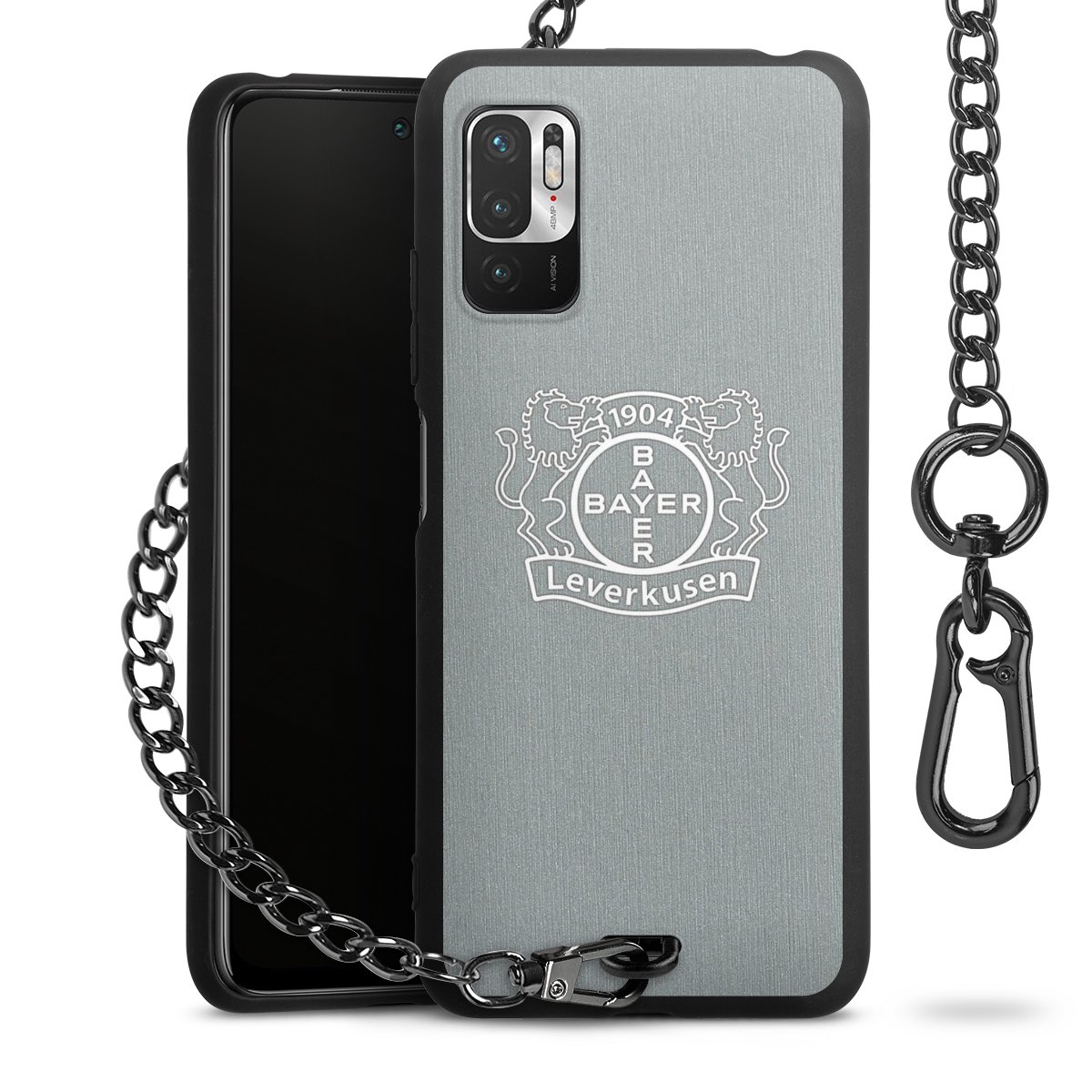 Die mattschwarze Silikon-Handyhülle besteht aus robustem TPU (thermoplastisches Polyurethan). Sie ist flexibel und schützt Dein Smartphone vor Stößen und Kratzern. Die Kette sowie der Karabinerhaken sind aus Metall in Gunmetal-Optik gefertigt. Für dieses Produkt kommen ausschließlich TÜV-geprüfte Materialien zum Einsatz.