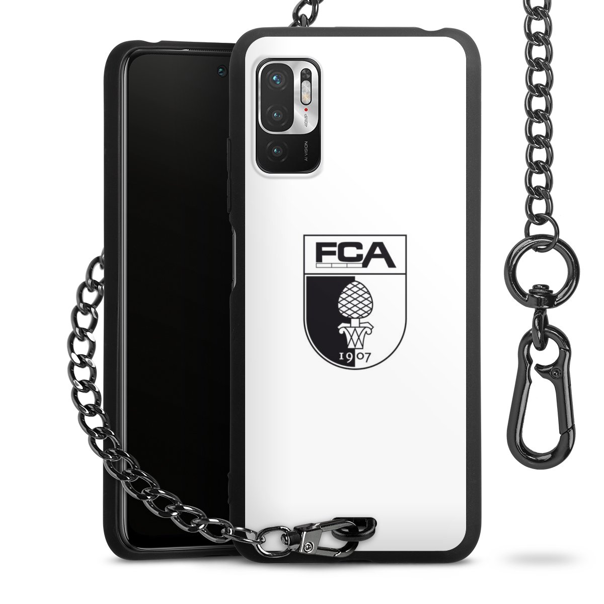 Die mattschwarze Silikon-Handyhülle besteht aus robustem TPU (thermoplastisches Polyurethan). Sie ist flexibel und schützt Dein Smartphone vor Stößen und Kratzern. Die Kette sowie der Karabinerhaken sind aus Metall in Gunmetal-Optik gefertigt. Für dieses Produkt kommen ausschließlich TÜV-geprüfte Materialien zum Einsatz.