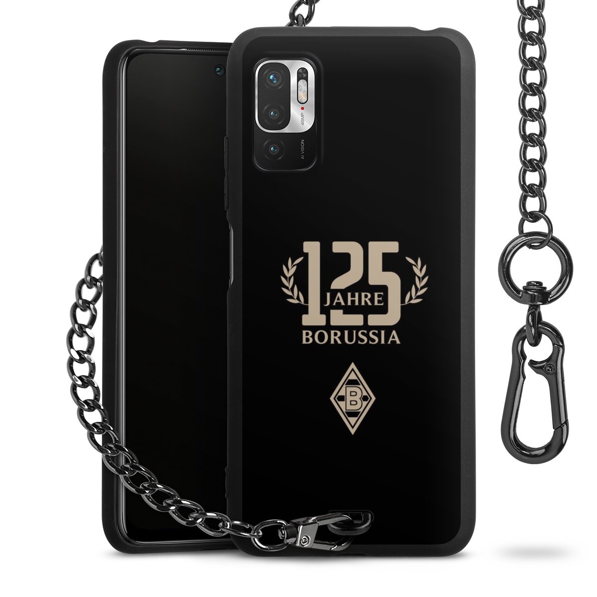 Die mattschwarze Silikon-Handyhülle besteht aus robustem TPU (thermoplastisches Polyurethan). Sie ist flexibel und schützt Dein Smartphone vor Stößen und Kratzern. Die Kette sowie der Karabinerhaken sind aus Metall in Gunmetal-Optik gefertigt. Für dieses Produkt kommen ausschließlich TÜV-geprüfte Materialien zum Einsatz.