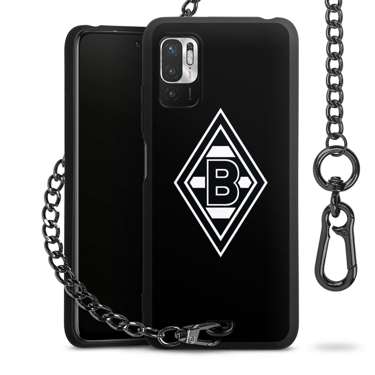 Die mattschwarze Silikon-Handyhülle besteht aus robustem TPU (thermoplastisches Polyurethan). Sie ist flexibel und schützt Dein Smartphone vor Stößen und Kratzern. Die Kette sowie der Karabinerhaken sind aus Metall in Gunmetal-Optik gefertigt. Für dieses Produkt kommen ausschließlich TÜV-geprüfte Materialien zum Einsatz.