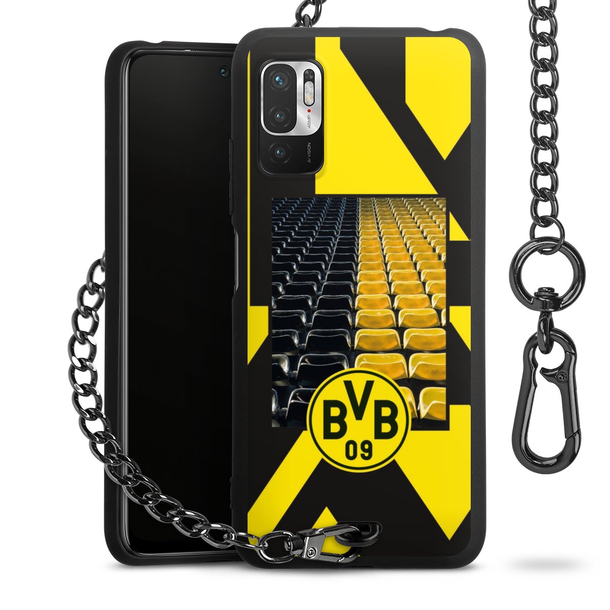 Die mattschwarze Silikon-Handyhülle besteht aus robustem TPU (thermoplastisches Polyurethan). Sie ist flexibel und schützt Dein Smartphone vor Stößen und Kratzern. Die Kette sowie der Karabinerhaken sind aus Metall in Gunmetal-Optik gefertigt. Für dieses Produkt kommen ausschließlich TÜV-geprüfte Materialien zum Einsatz.
