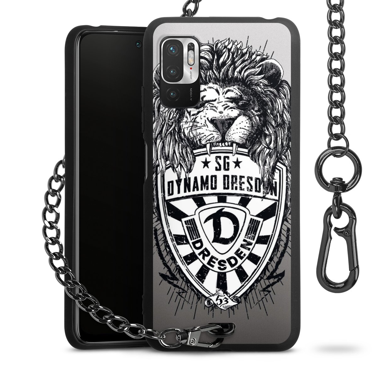 Die mattschwarze Silikon-Handyhülle besteht aus robustem TPU (thermoplastisches Polyurethan). Sie ist flexibel und schützt Dein Smartphone vor Stößen und Kratzern. Die Kette sowie der Karabinerhaken sind aus Metall in Gunmetal-Optik gefertigt. Für dieses Produkt kommen ausschließlich TÜV-geprüfte Materialien zum Einsatz.