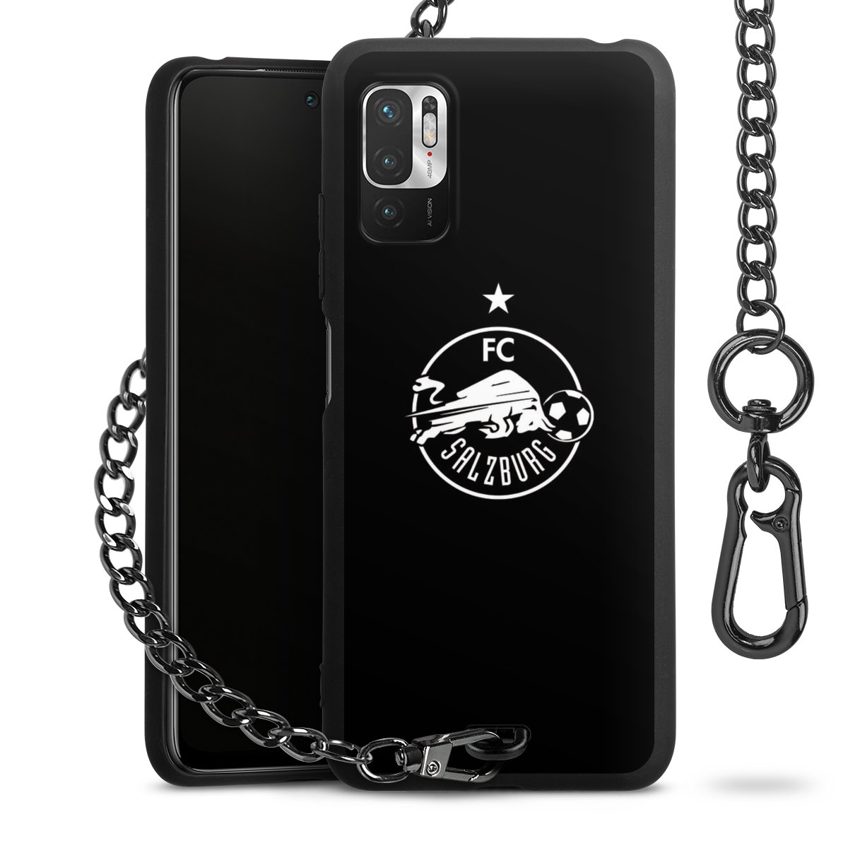 • Mattschwarze Handyhülle mit Metallkette