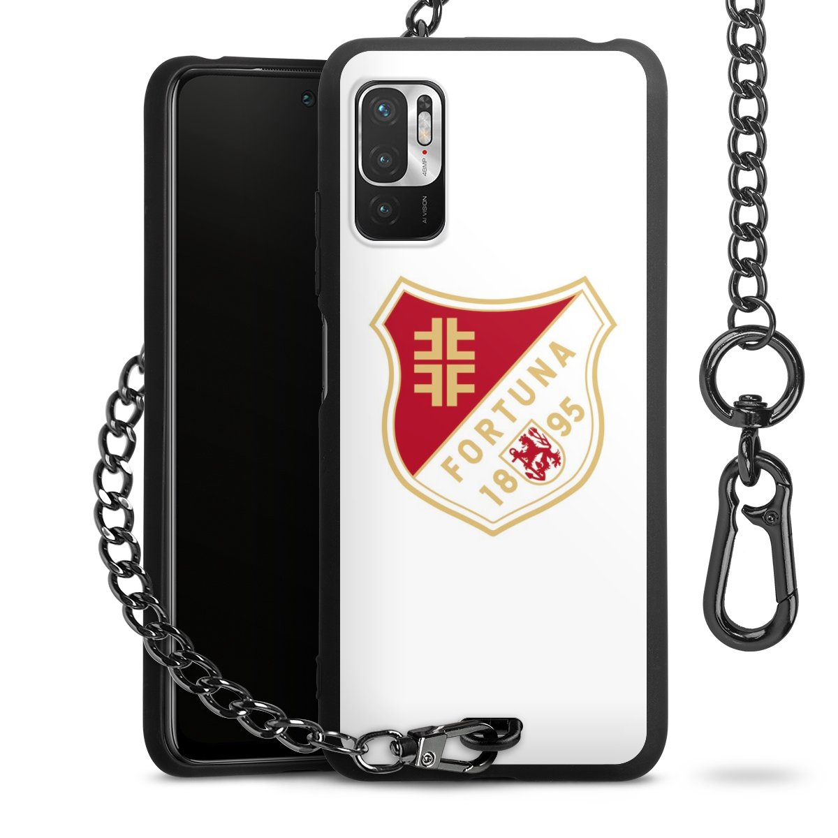 Die mattschwarze Silikon-Handyhülle besteht aus robustem TPU (thermoplastisches Polyurethan). Sie ist flexibel und schützt Dein Smartphone vor Stößen und Kratzern. Die Kette sowie der Karabinerhaken sind aus Metall in Gunmetal-Optik gefertigt. Für dieses Produkt kommen ausschließlich TÜV-geprüfte Materialien zum Einsatz.