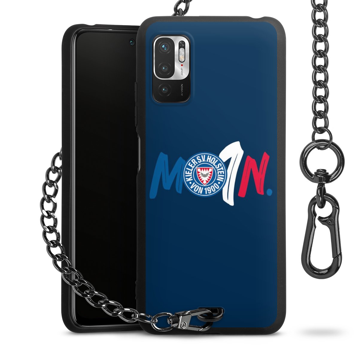 Die mattschwarze Silikon-Handyhülle besteht aus robustem TPU (thermoplastisches Polyurethan). Sie ist flexibel und schützt Dein Smartphone vor Stößen und Kratzern. Die Kette sowie der Karabinerhaken sind aus Metall in Gunmetal-Optik gefertigt. Für dieses Produkt kommen ausschließlich TÜV-geprüfte Materialien zum Einsatz.