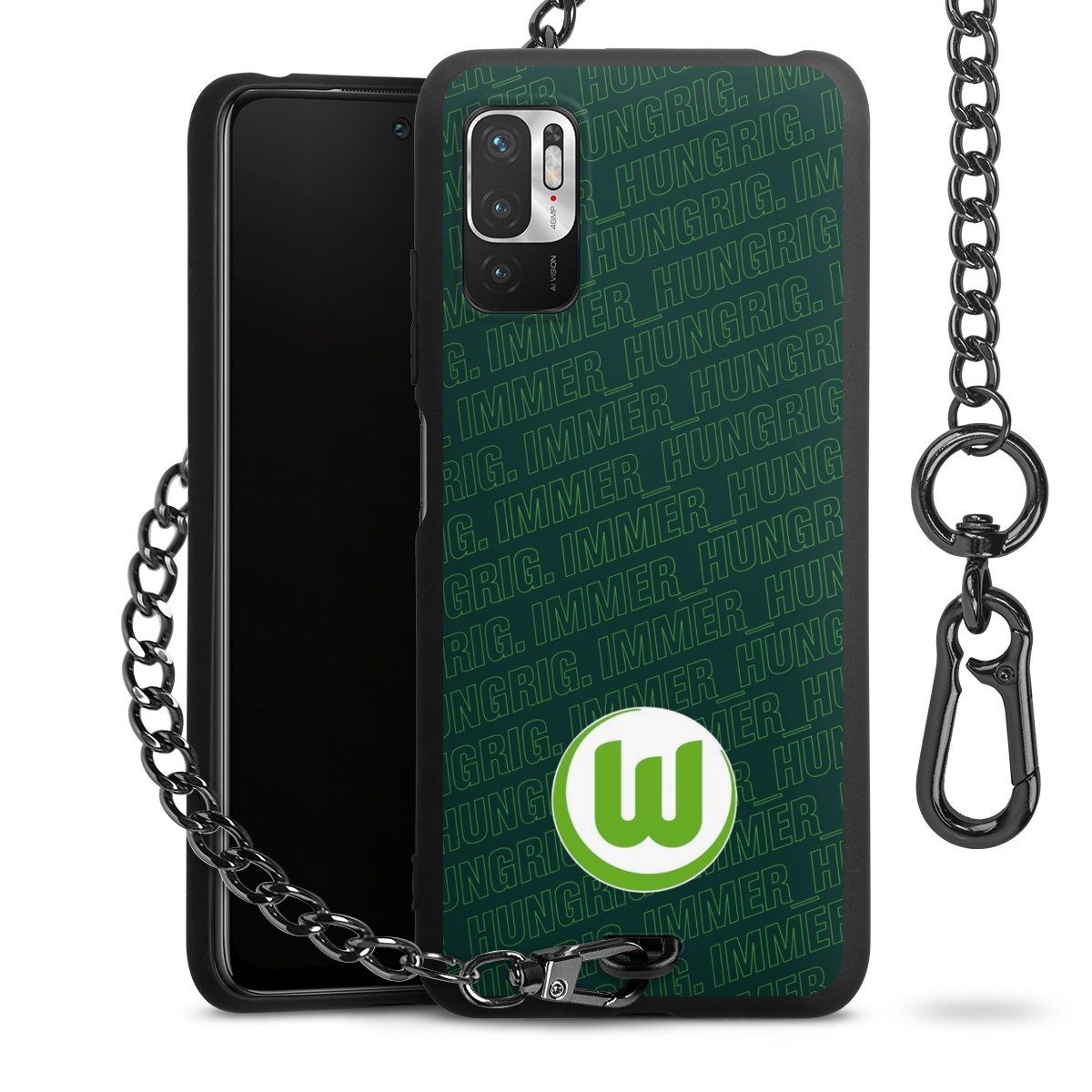 Die mattschwarze Silikon-Handyhülle besteht aus robustem TPU (thermoplastisches Polyurethan). Sie ist flexibel und schützt Dein Smartphone vor Stößen und Kratzern. Die Kette sowie der Karabinerhaken sind aus Metall in Gunmetal-Optik gefertigt. Für dieses Produkt kommen ausschließlich TÜV-geprüfte Materialien zum Einsatz.