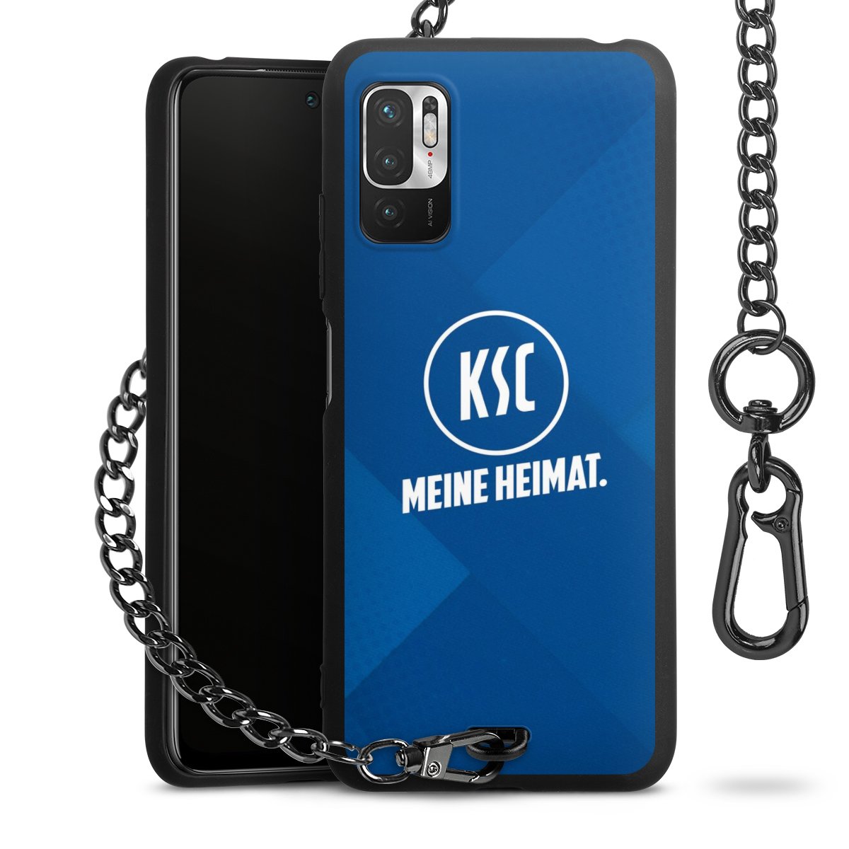 Die mattschwarze Silikon-Handyhülle besteht aus robustem TPU (thermoplastisches Polyurethan). Sie ist flexibel und schützt Dein Smartphone vor Stößen und Kratzern. Die Kette sowie der Karabinerhaken sind aus Metall in Gunmetal-Optik gefertigt. Für dieses Produkt kommen ausschließlich TÜV-geprüfte Materialien zum Einsatz.