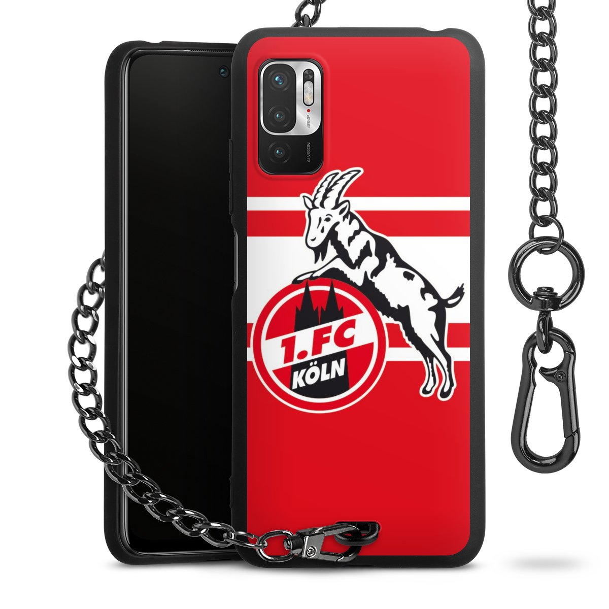 Die Handyhülle verfügt über eine mittig am unteren Rand platzierte Öse, an der die Metallkette stabil befestigt ist. Bestelle die Hülle einfach für Dein Smartphone-Modell, dann passt sie wie angegossen und Du brauchst sie bloß einmal anzudrücken. Handy in die Tasche, Karabiner an den Hosenbund – schon kann die Party starten.