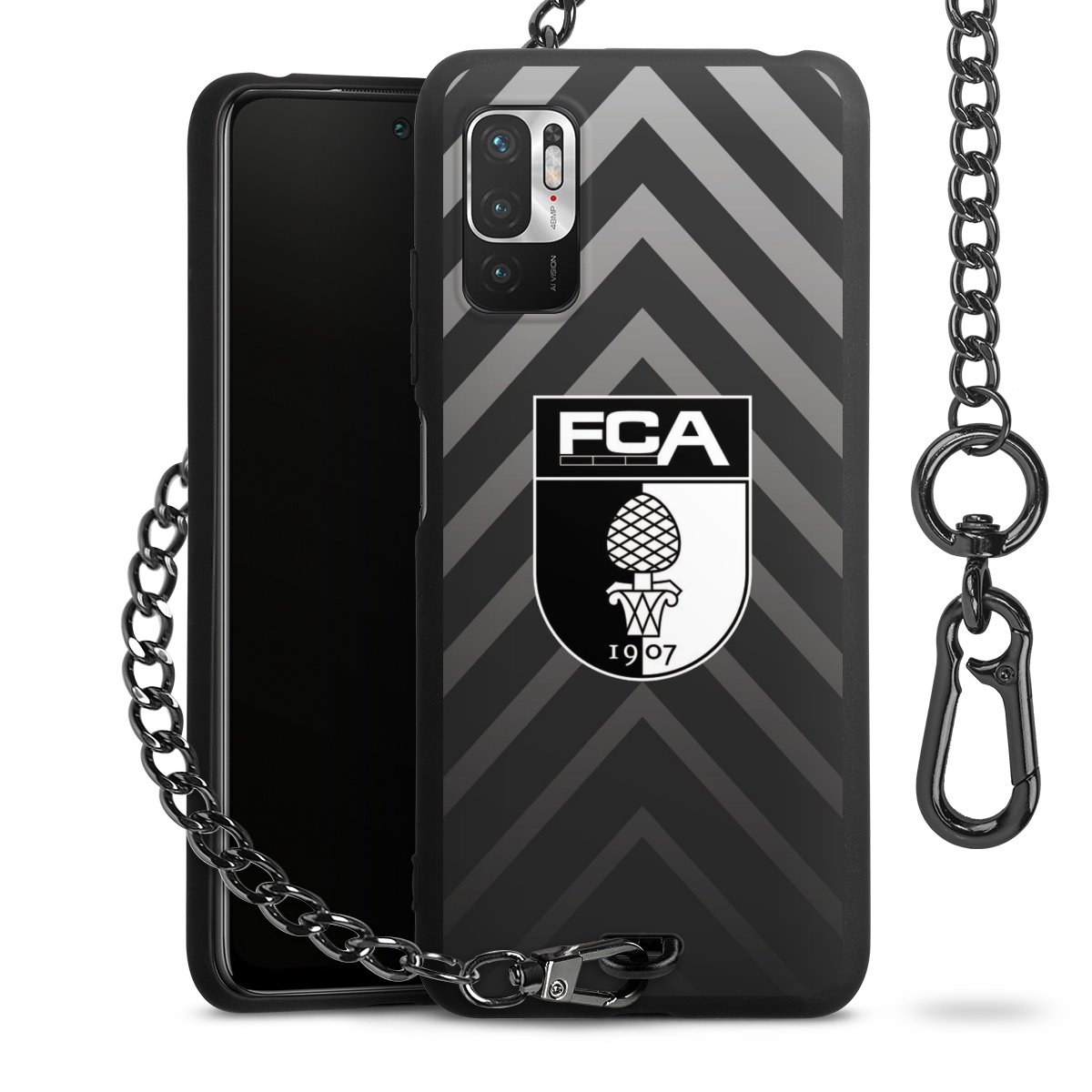 • Mattschwarze Handyhülle mit Metallkette