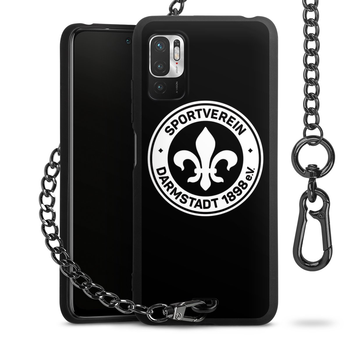 Die mattschwarze Silikon-Handyhülle besteht aus robustem TPU (thermoplastisches Polyurethan). Sie ist flexibel und schützt Dein Smartphone vor Stößen und Kratzern. Die Kette sowie der Karabinerhaken sind aus Metall in Gunmetal-Optik gefertigt. Für dieses Produkt kommen ausschließlich TÜV-geprüfte Materialien zum Einsatz.