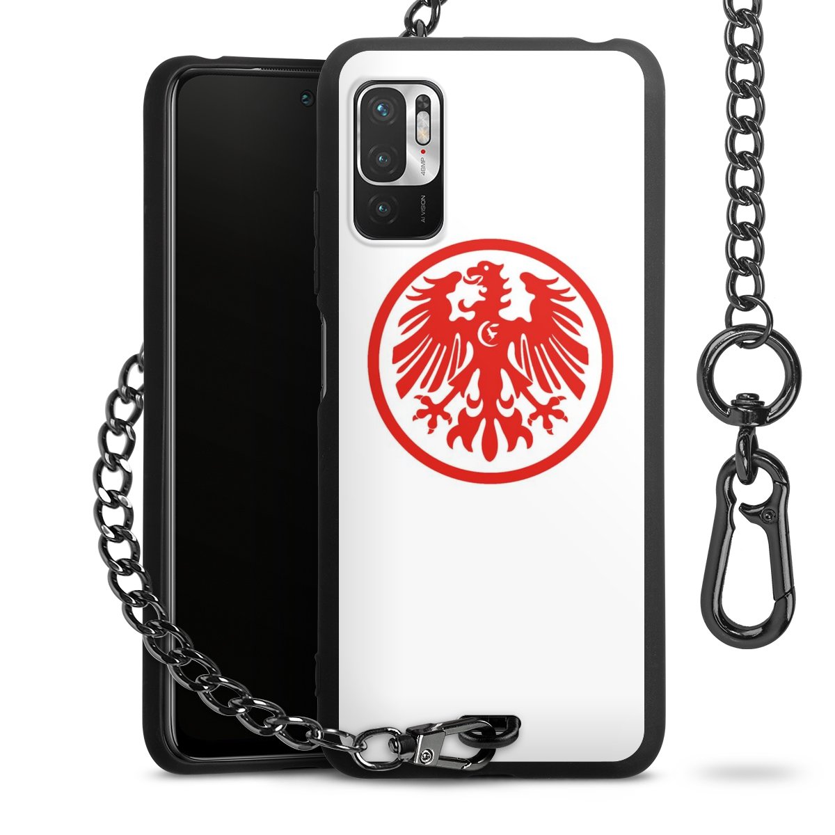 • Mattschwarze Handyhülle mit Metallkette