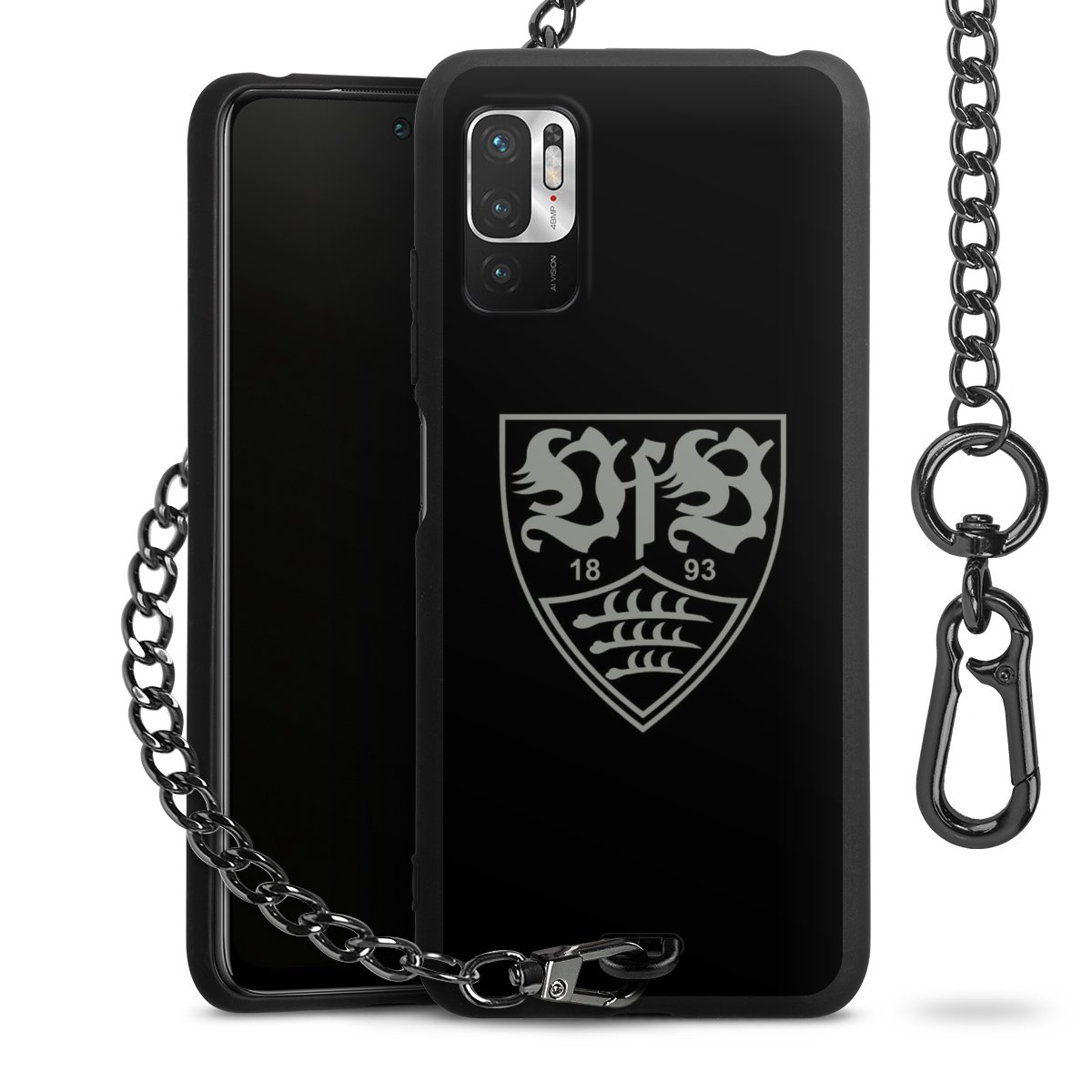 Die mattschwarze Silikon-Handyhülle besteht aus robustem TPU (thermoplastisches Polyurethan). Sie ist flexibel und schützt Dein Smartphone vor Stößen und Kratzern. Die Kette sowie der Karabinerhaken sind aus Metall in Gunmetal-Optik gefertigt. Für dieses Produkt kommen ausschließlich TÜV-geprüfte Materialien zum Einsatz.