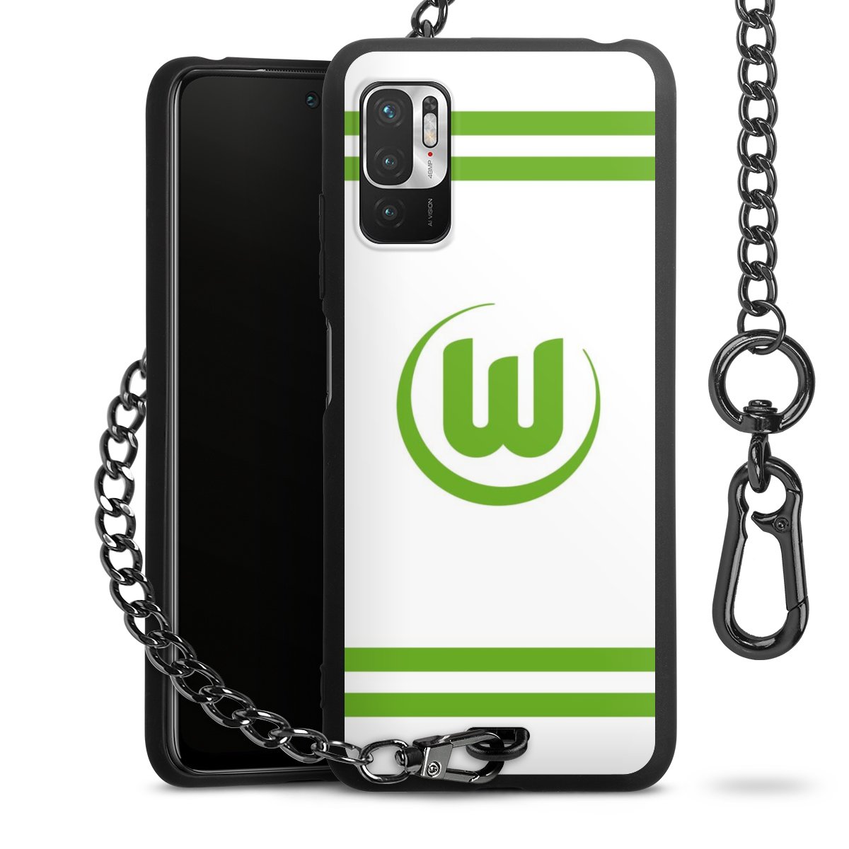 Die mattschwarze Silikon-Handyhülle besteht aus robustem TPU (thermoplastisches Polyurethan). Sie ist flexibel und schützt Dein Smartphone vor Stößen und Kratzern. Die Kette sowie der Karabinerhaken sind aus Metall in Gunmetal-Optik gefertigt. Für dieses Produkt kommen ausschließlich TÜV-geprüfte Materialien zum Einsatz.