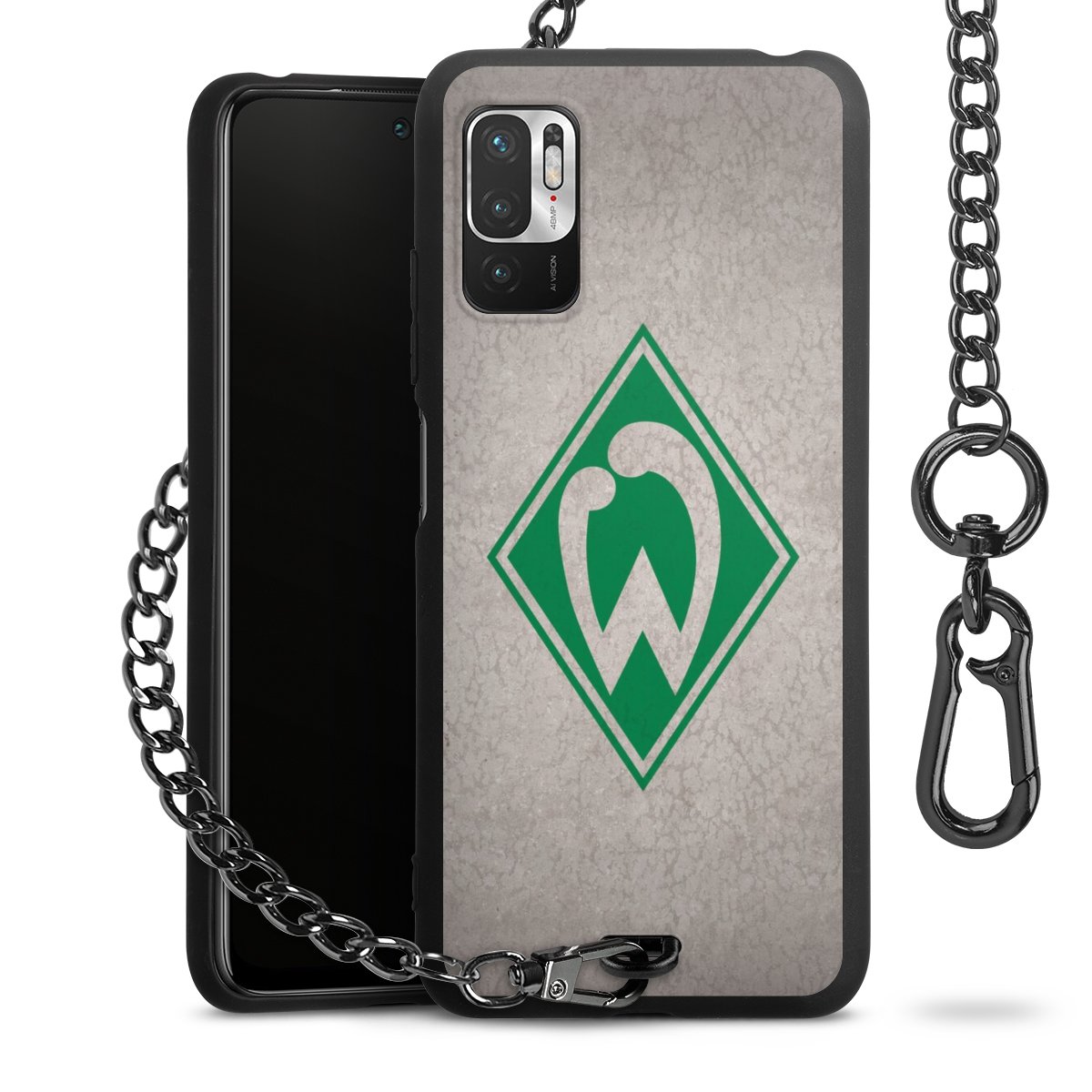 Die mattschwarze Silikon-Handyhülle besteht aus robustem TPU (thermoplastisches Polyurethan). Sie ist flexibel und schützt Dein Smartphone vor Stößen und Kratzern. Die Kette sowie der Karabinerhaken sind aus Metall in Gunmetal-Optik gefertigt. Für dieses Produkt kommen ausschließlich TÜV-geprüfte Materialien zum Einsatz.