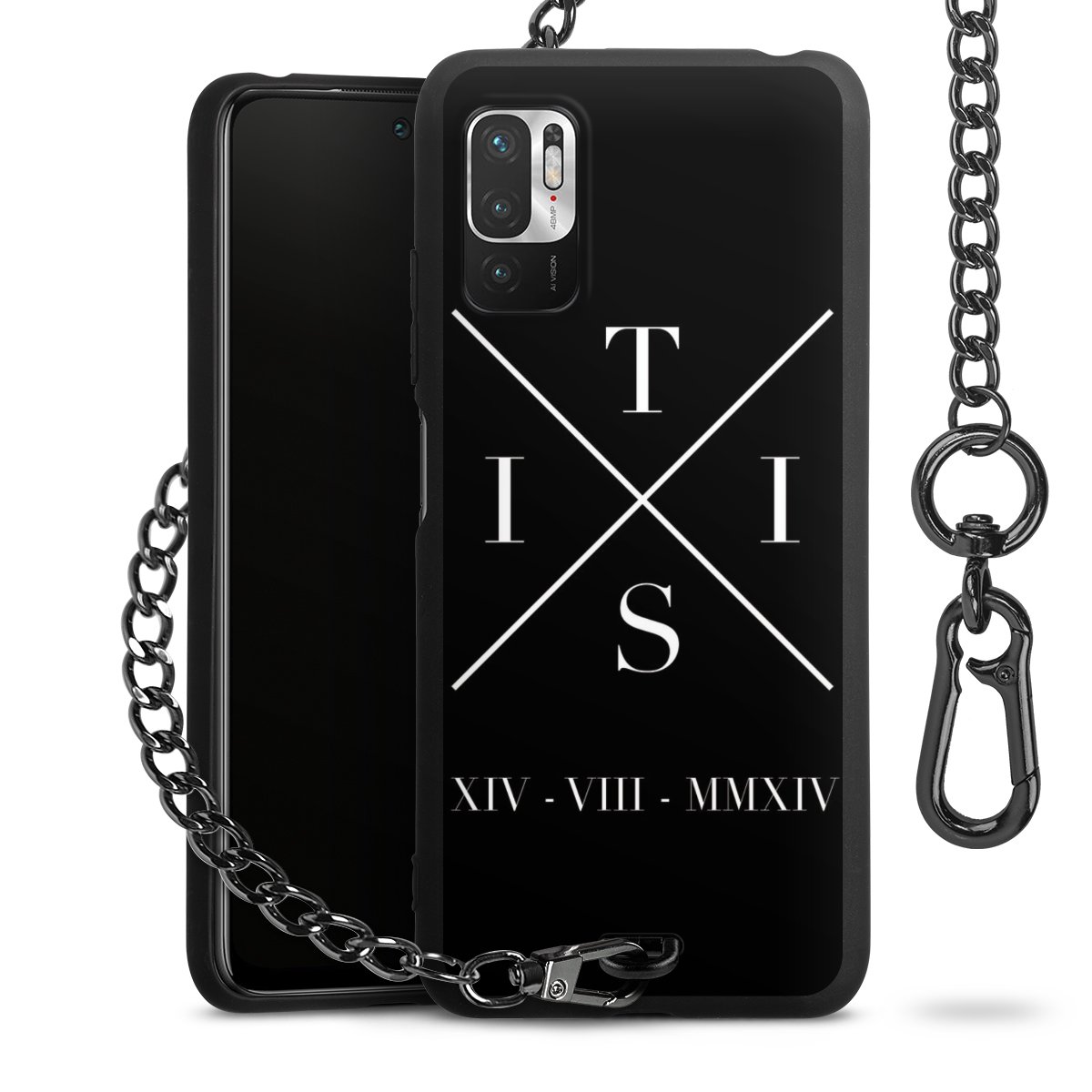Die mattschwarze Silikon-Handyhülle besteht aus robustem TPU (thermoplastisches Polyurethan). Sie ist flexibel und schützt Dein Smartphone vor Stößen und Kratzern. Die Kette sowie der Karabinerhaken sind aus Metall in Gunmetal-Optik gefertigt. Für dieses Produkt kommen ausschließlich TÜV-geprüfte Materialien zum Einsatz.